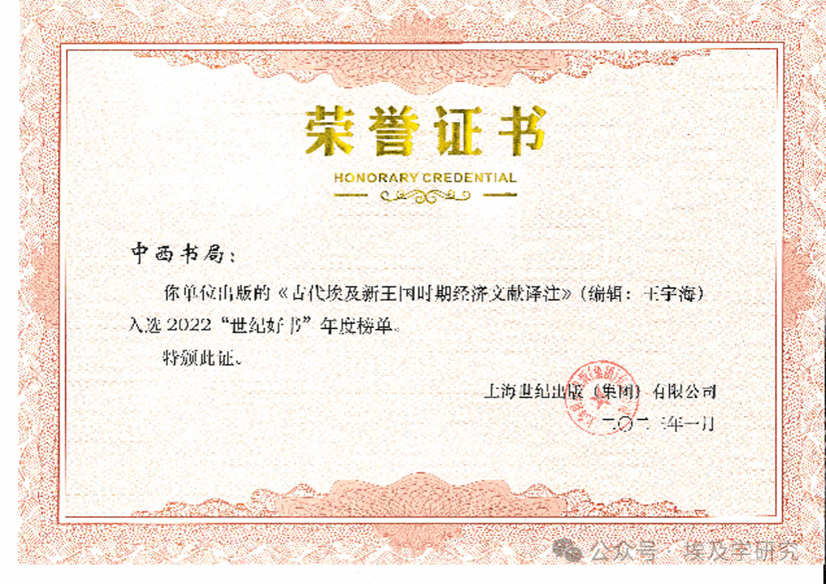 这一重大项目的第一项研究成果《古代埃及新王国时期经济文献译注》(上、下编)已于2021年出版,曾获上海市第十六届哲学社会科学优秀成果一等奖、华东地区古籍优秀图书一等奖、2022年度“世纪好书”年榜。