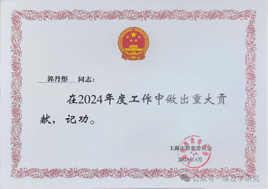郭丹彤获得2024年度上海大学文学院“年度特别奖”。