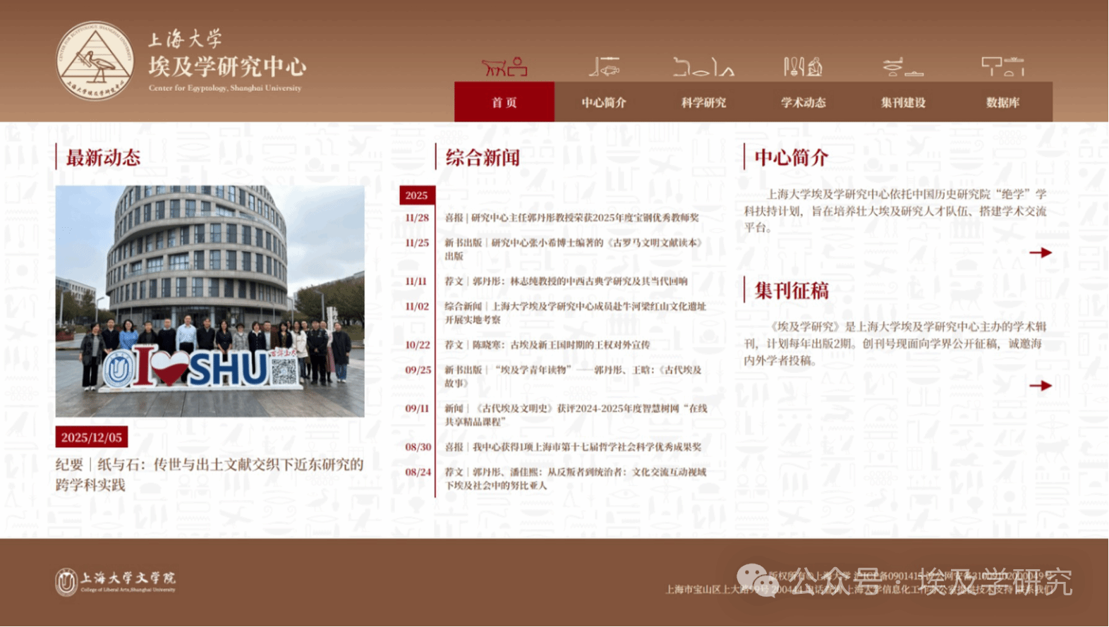 2025年8月5日,上海大学埃及学研究中心官方网站正式上网运行。