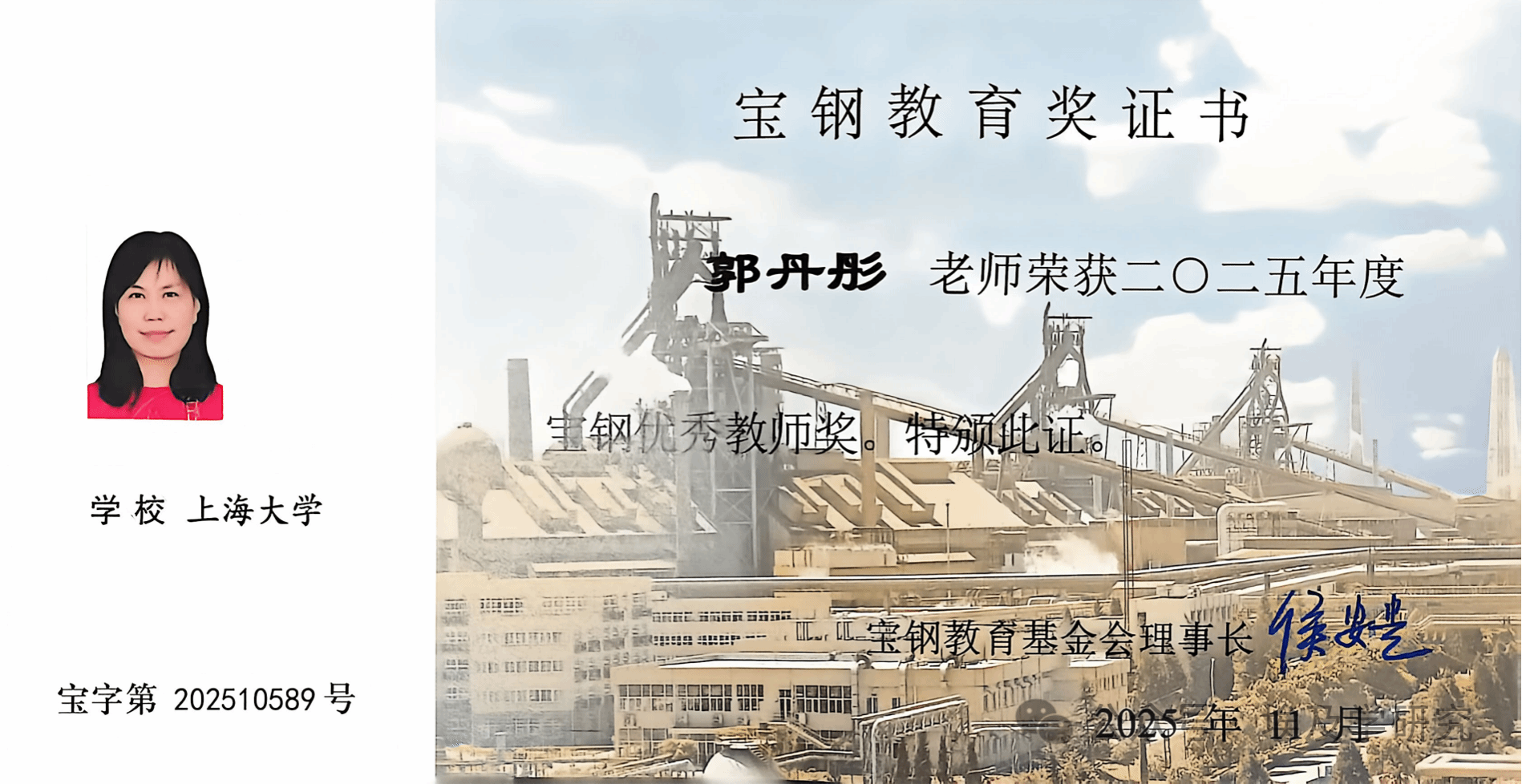 郭丹彤获2025年度宝钢教育奖优秀教师奖。